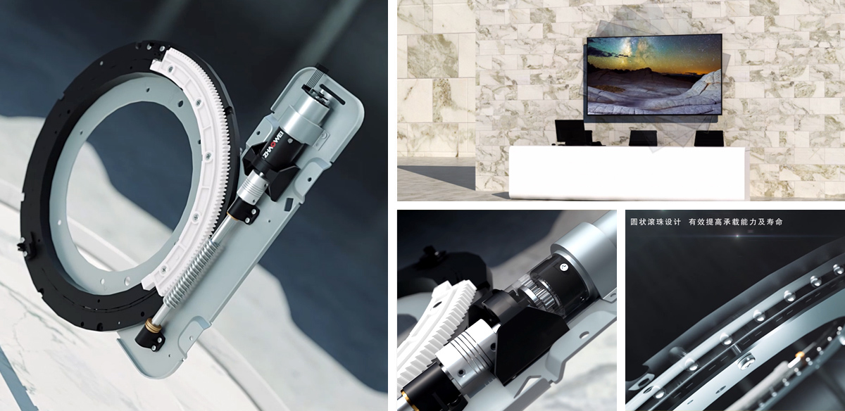 產(chǎn)品說(shuō)明:電視機(jī)智慧屏翻轉(zhuǎn)驅(qū)動(dòng)系統(tǒng)通過(guò)行星齒輪箱和齒輪圓弧圓周運(yùn)動(dòng),提升電視機(jī)屏幕的智能翻轉(zhuǎn),提高了產(chǎn)品運(yùn)動(dòng)的穩(wěn)定性,降低使用過(guò)程中的噪音。